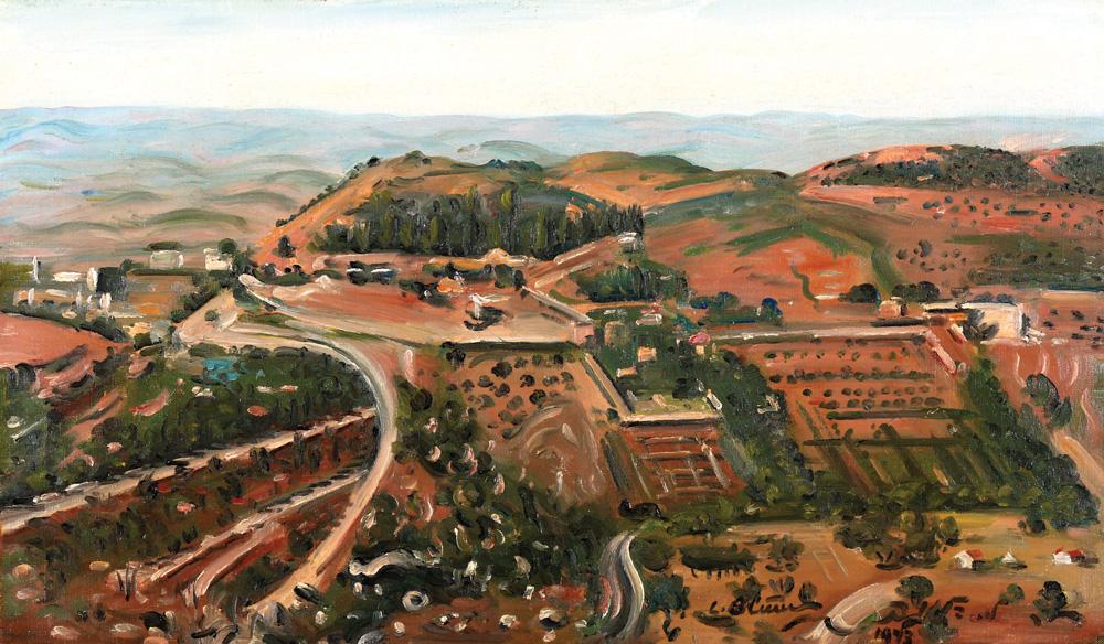 Ludwig Blum, Israeli Art, 1891 - 1975, The Judea Mountains, 1943, Oil on canvas, 38x65cm, Signed. Dated and titled on the reverse., , , , A hand written certificate of authenticity by the artist daughter on the reverse.,