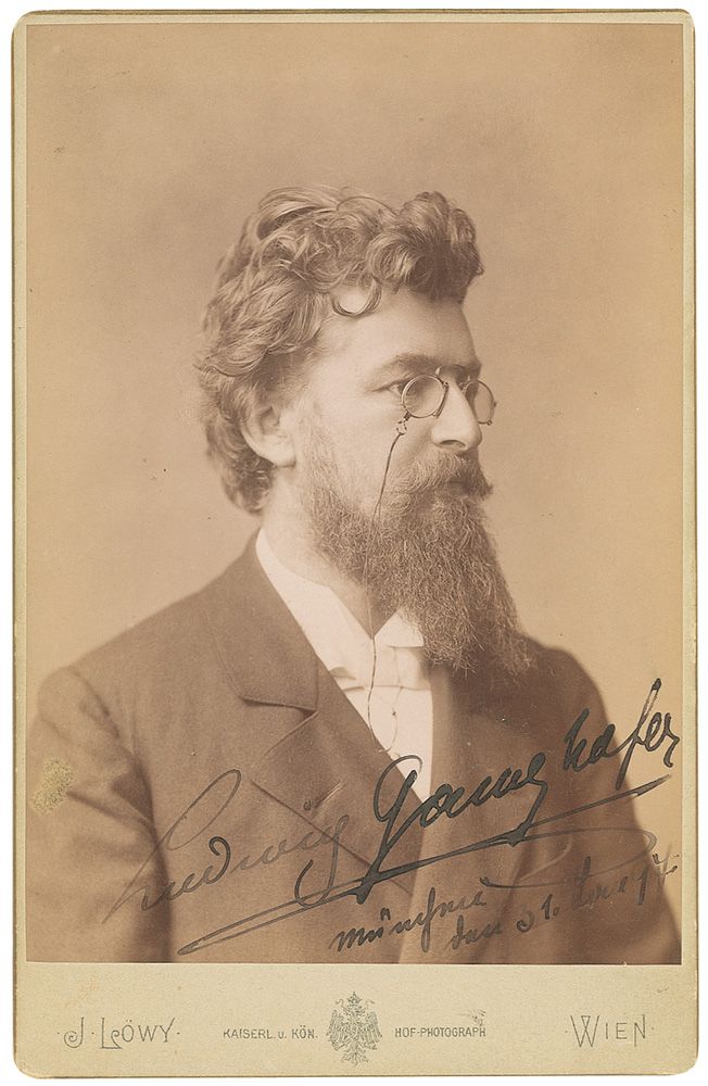 German writer (1855–1920) famous for his homeland novels. Original 4.25 x 6.5 cabinet photo by J. Lowy of Vienna, signed at the bottom of the image in black ink and dated 1897. In fine condition, with a spot to the lower left of the image.