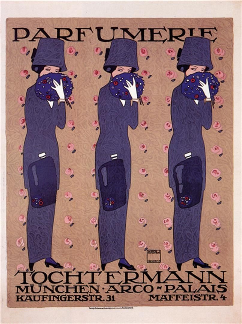 Artist: Ludwig Hohlwein Title: Tochtermann Parmumerie Medium: Fine Art Giclee on Canvas Image Size: Approximately 26.75 inches x 20 inches Framed: Unframed on Unstretched Canvas Biography: Ludwig Hohlwein (1874 - 1949), born in Wiesbaden, Berchtesgaden in 1874 was a German poster artist. He was trained and practiced as an architect until 1906 when he switched to poster design. Hohlwein's most artistically important phase was before World War II in the years 1912-1925. A large variety of his best posters dates to this period. He developed his own distinct style with sharply defined forms, bright colours and a good portion of humour. By 1925, he had already designed 3000 different advertisements.