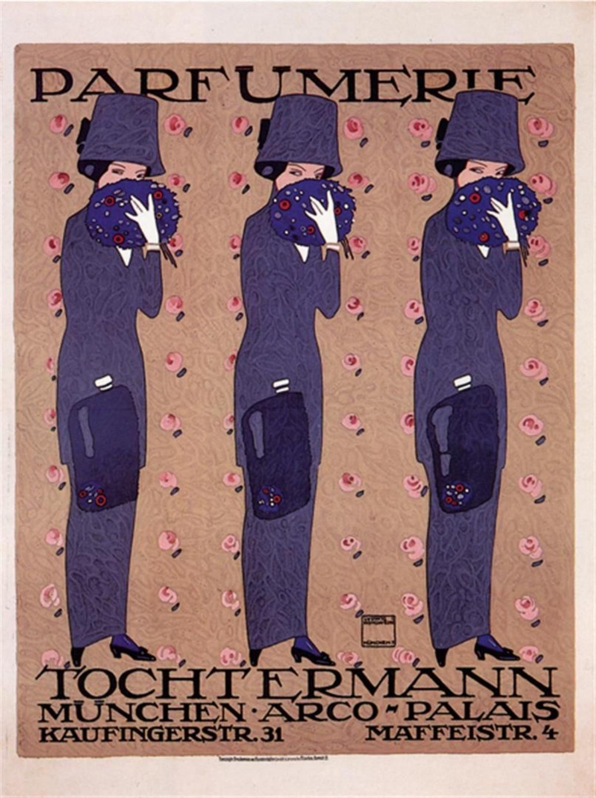 Artist: Ludwig Hohlwein Title: Tochtermann Parmumerie Medium: Fine Art Giclee on Canvas Image Size: Approximately 26.75 inches x 20 inches Unframed on Unstretched Canvas Biography: Ludwig Hohlwein (1874 - 1949), born in Wiesbaden, Berchtesgaden in 1874 was a German poster artist. He was trained and practiced as an architect until 1906 when he switched to poster design. Hohlwein's most artistically important phase was before World War II in the years 1912-1925. A large variety of his best posters dates to this period. He developed his own distinct style with sharply defined forms, bright colours and a good portion of humour. By 1925, he had already designed 3000 different advertisements.