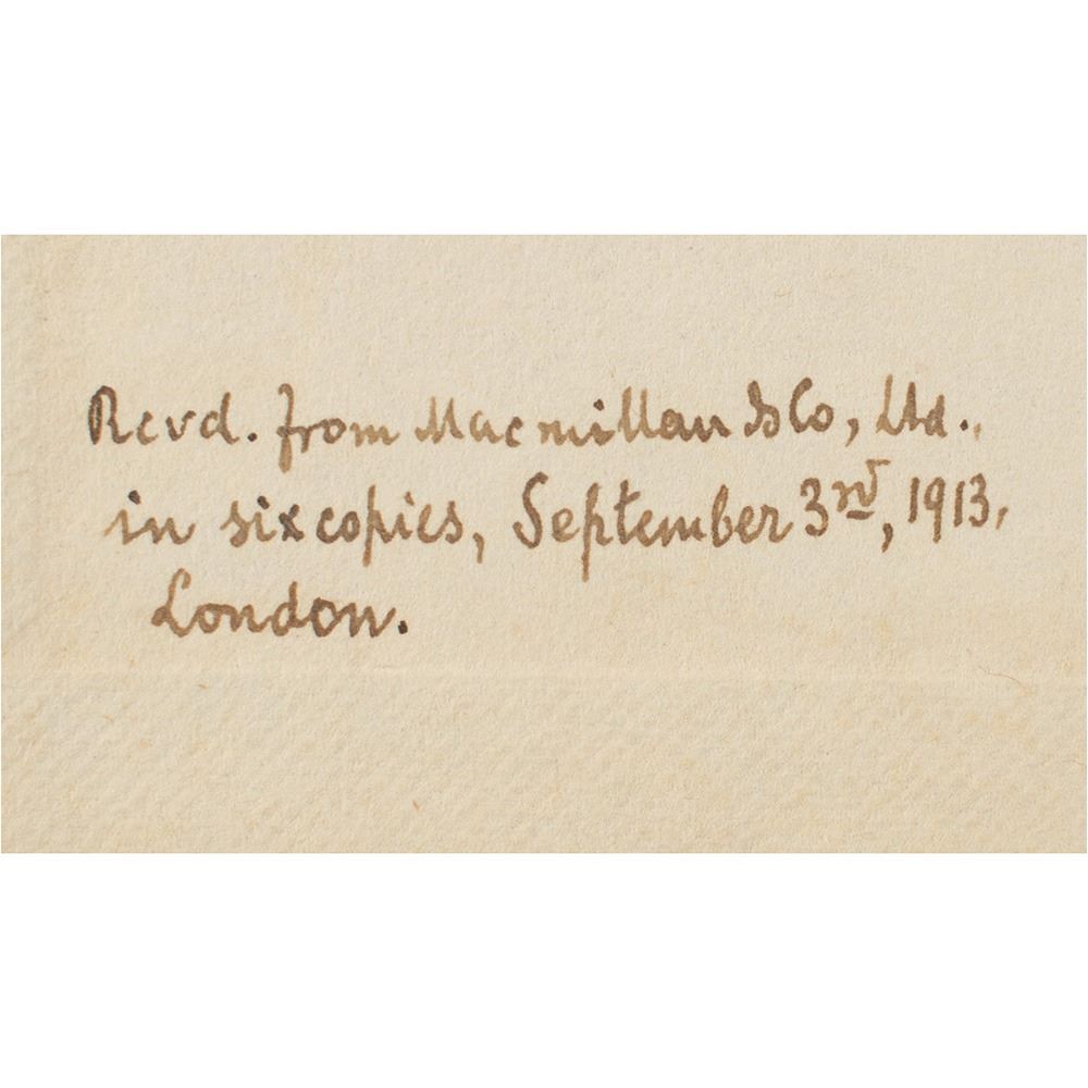 Signed book: Vectorial Mechanics. First edition. London: Macmillan and Co., 1913. Hardcover, 5.75 x 8.75, 197 pages. Signed on the first free end page by the author, "Ludwik Silberstein," who adds notes to the front pastedown: "Rcvd. from Macmillan & Co. Ltd., in six copies, September 3rd, 1913, London" and "Published at 7/6, 1913, Revised to 10/0 in 1918." On two blank pages in the rear, Silberstein writes out notes under the heading "Hodograph of Keplerian Motion." Includes Silberstein's original memorandum of agreement from the publisher, three pages, 8.25 x 13.5, February 25, 1913, outlining the terms of the agreement and signed at the conclusion by the firm's director, "Maurice Macmillan." In overall very good to fine condition, with light edgewear to the book, and scattered staining to the publishing document.