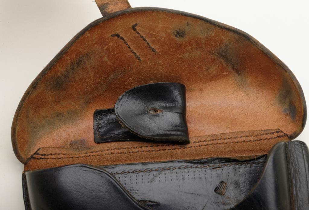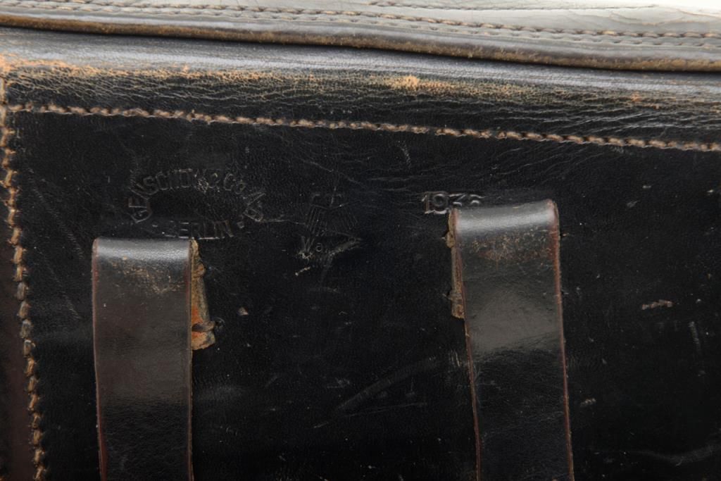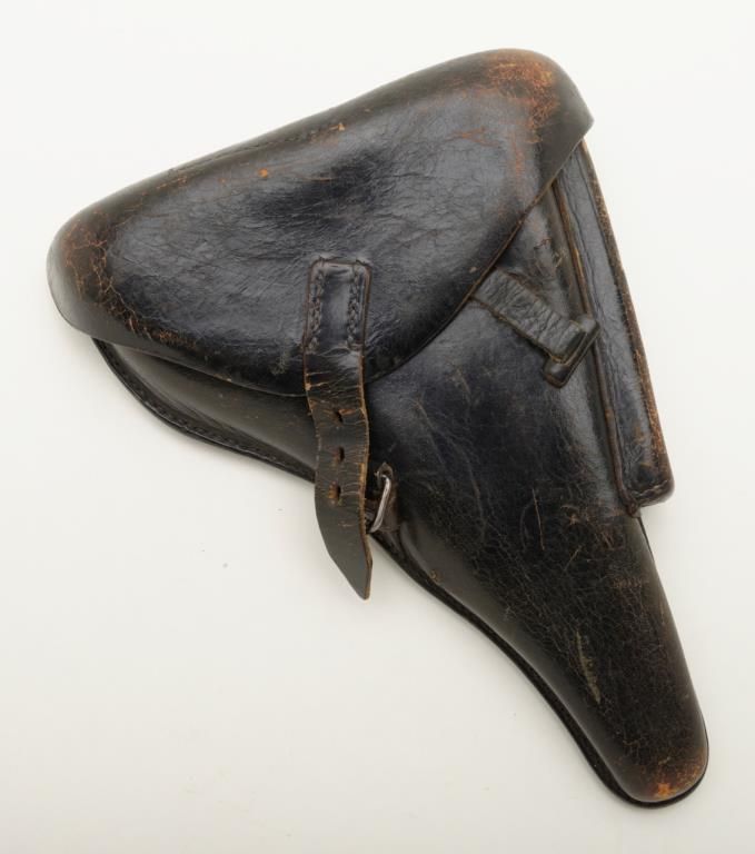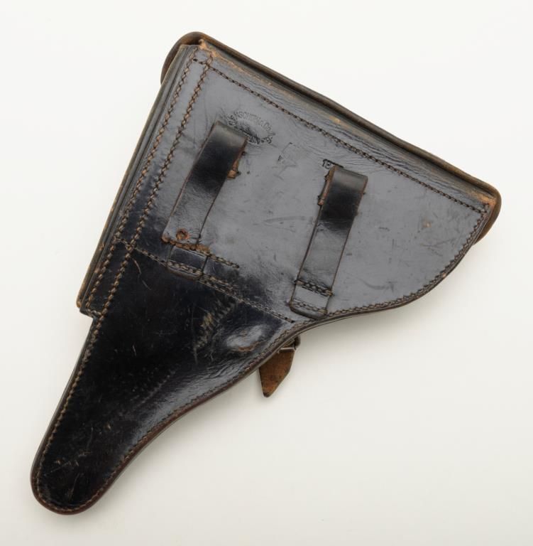 Luger Holster dated 1936 with Weimar Eagle and maker mark by Genshow. Good to V.G. Est. $150-300.