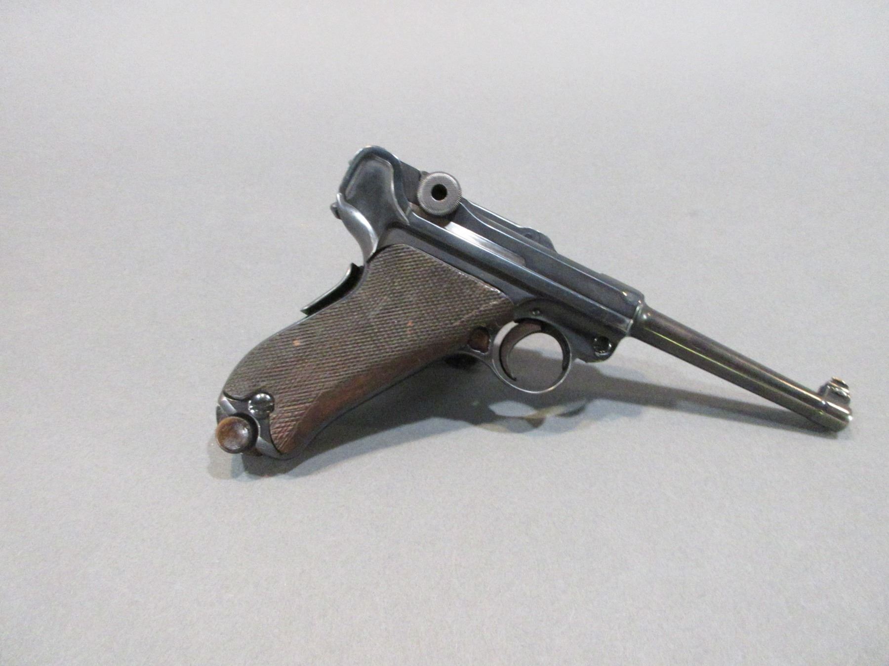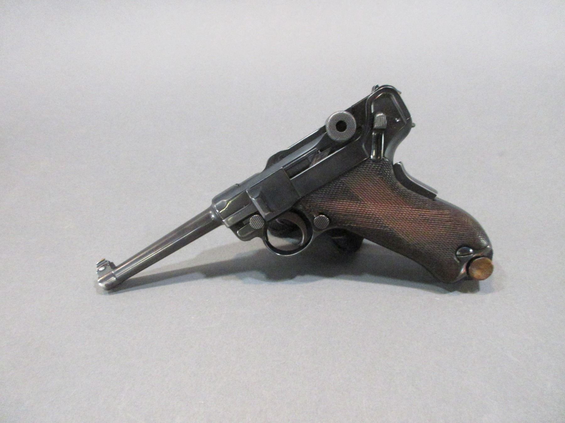 Luger Model 1906 American Eagle Semi-Automatic Pistol- 7.62- 4.5" Barrel- DWN Crest- Wood Grips- Made in Germany- 1/1000- used By US Army- Fair To Good Condition- #44416