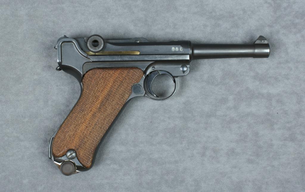 Luger by DWM semi-auto pistol, import marked, 9mm cal., 4” barrel, mat black re-finish, checkered