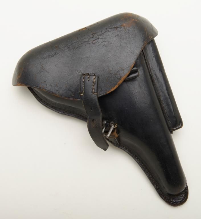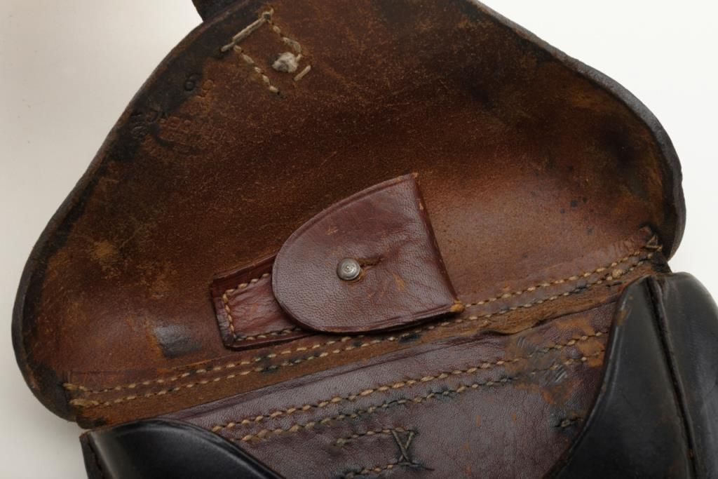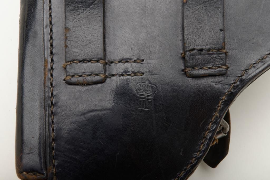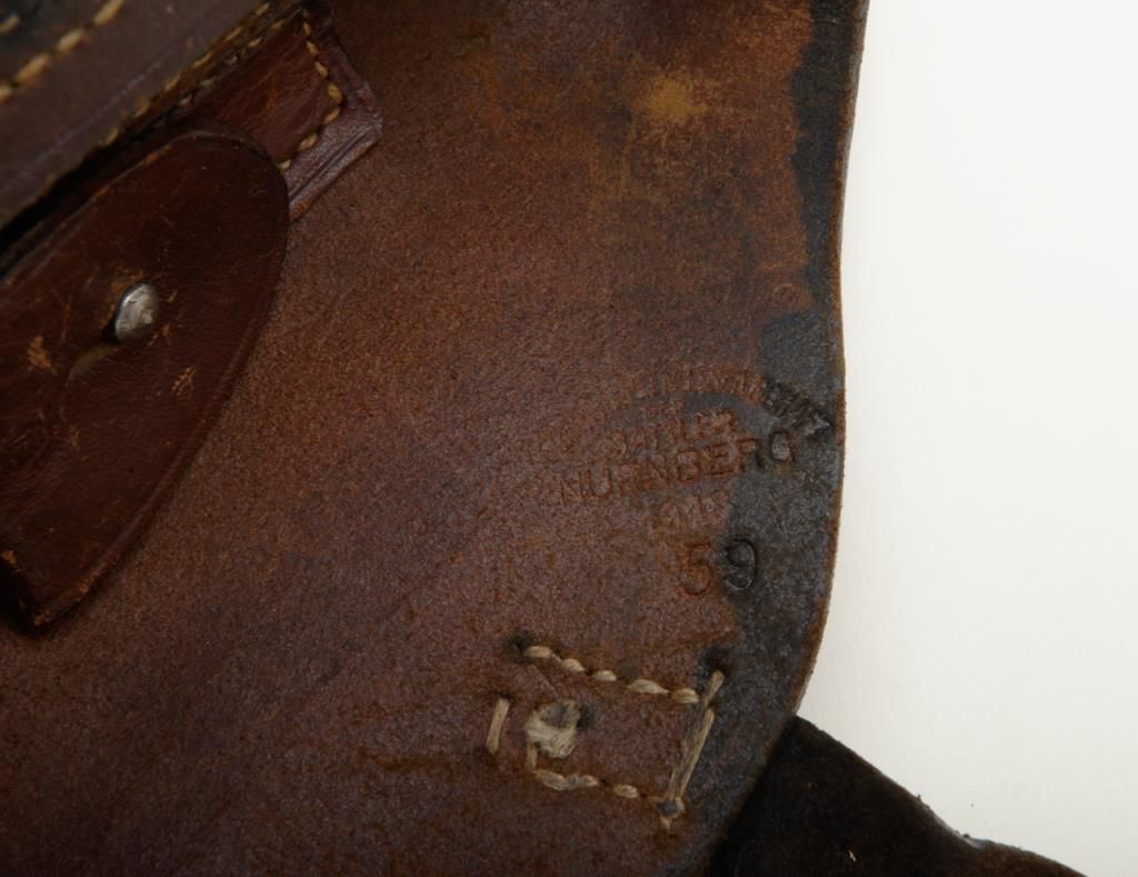 Luger holster marked Nuremburg with light maker's stamp on inner flap. Shows crown with "III" in Roman numerals on back. V.G. Plus. Est. $175-350.