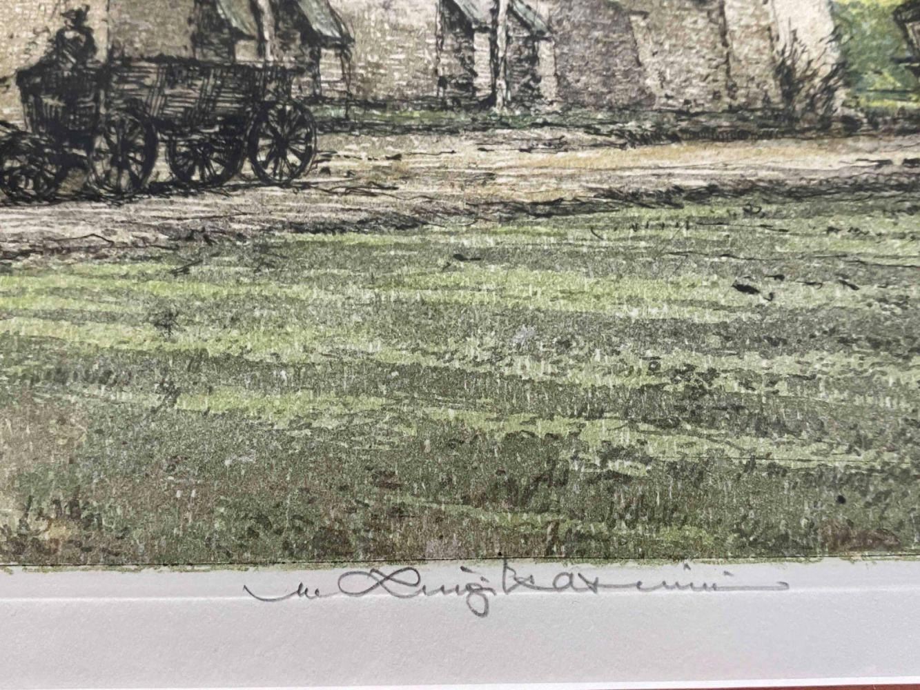 European Landscape Etching. Signed Illegibly. Approximately 23.0L x 21.5W in. Sight Approximately 12.0L x 11.75W in.