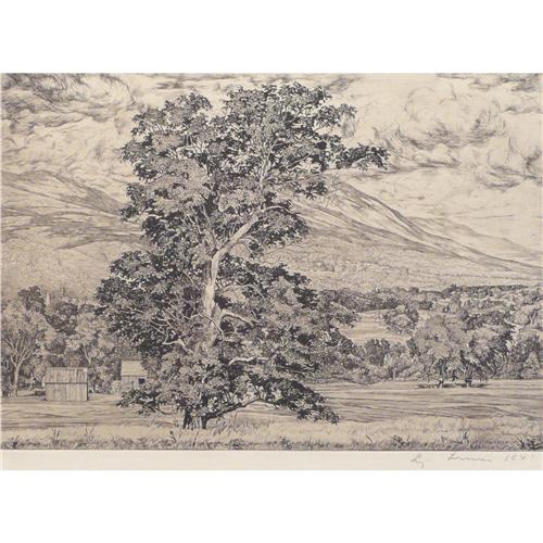 Luigi Lucioni (1900-1988), Etching, Farm Scene, 8 1/4" x 12", Pencil signed 1941 lower right.
