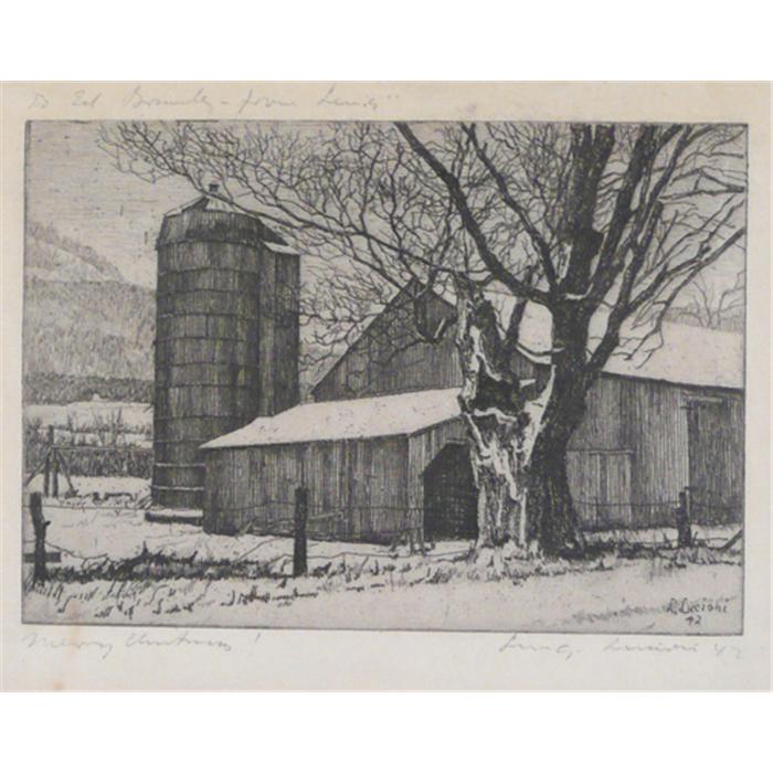 Luigi Lucioni (1900-1988) Etching "Merry Christmas" Signed lower right '42 4 1/4" x 6"