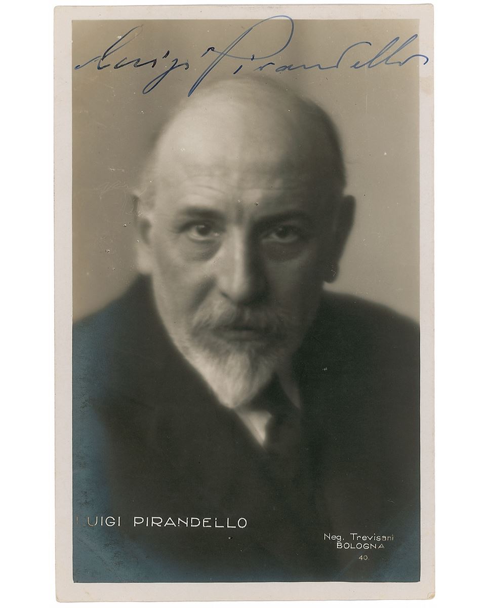 Italian dramatist, novelist, and short story writer (1867–1936) awarded the Nobel Prize in Literature in 1934. Uncommon matte-finish 3.5 x 5.5 postcard photo of Pirandello, signed in ink. In fine condition, with some slight silvering to darker areas along edges.