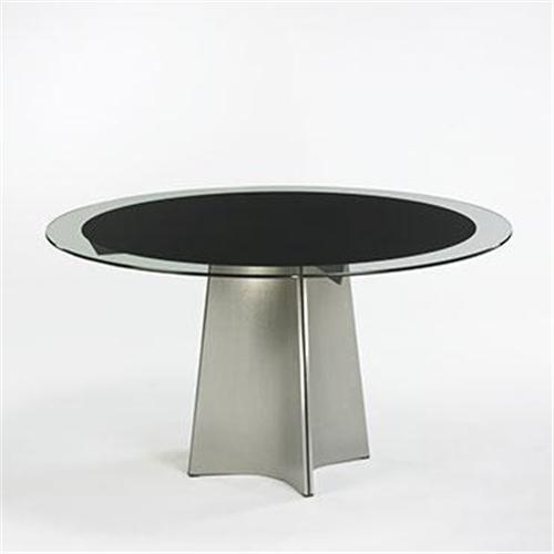 Luigi Saccardo<BR>dining table<BR>Arrmet<BR>France, c. 1970<BR>stainless steel, silvered glass<BR>51 dia x 28 h inches<BR>Signed with decal manufacturer's label to base: [Arrmet Designer L. Saccardo Made In Italy].<BR><BR>Condition of the item is not included in this description. Condition reports are available from Wright upon request. Wright strongly recommends that you review a condition report for each item on which you plan to bid.