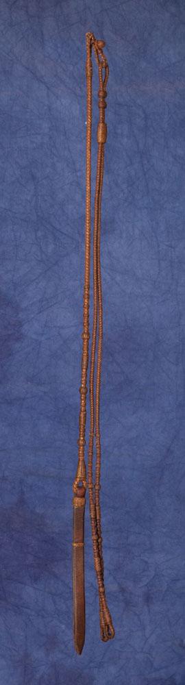 Dark brown braiding with Luis’ characteristic buttons and signature carved inside the leather popper, c. 1940s-50s.