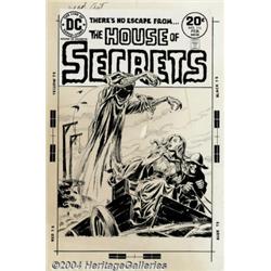 Luis Dominguez - Original Cover Art for House of Secrets #116 (DC, 1974). Luis Dominguez excels at illustrational cartooning, especially in the western, love, war, and horror genres. Here he combines a fine-line precision with a looser dry brush technique for creating the atmospheric shadows and spooky mood. In the gothic romance-mystery tradition revived by DC editor Joe Orlando, a lovely lass is menaced by a macabre figure as she beats a hasty retreat from the gallows. The art is signed with the "LD" monograph, under the ghostly apparition. The art paper measures 12" x 17.5", with an image area of 10" x 15.25", and the art is in very clean condition. There is some minor paper aging, and a small vertical stain under the logo, near the apparition's left hand. The title logo box stat is a replacement, and is color-matched to the art paper. Important notice: Heritage usually auctions material at the rate of 200-250 lots per hour. On some occasions eBay Live bid software or the Internet may not be able to keep up with the pace of the auction. We recommend placing a realistic absentee bid now as insurance to avoid disappointment. Occasionally the auctioneer may eliminate or reject an eBay Live bid, and the auctioneer may also reopen a lot after the close of the eBay live bidding (usually because we missed an audience bid), and may reject your bid even if it shows you as the winning bidder. By bidding via eBay Live, you agree that Heritage may award the lot to another bidder at its sole discretion under the circumstances described above or any other reasonable circumstances. Since eBay bids are not shown to us until we open the lot on the floor, we treat those bids just like floor bids. In most cases the floor responds before the eBay bid is presented to us, due to Internet lag time, so for consistency we have made it a policy that floor bids are always considered first over tie eBay live bids. Also please note that all Heritage lots purchased through eBay Live carry a 20% Buyer's Premium. Please make sure you read the Terms and Conditions before you bid.