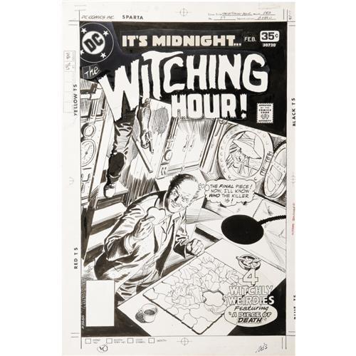 Solving a murder is about to get a bit deadly for a puzzle-player, in this "witchly weird" cover illustration by Luis Dominguez. The image area measures 10" x 15", and this piece includes the original logo, title type, and masthead paste-up art. There is some paper tanning; otherwise the condition is Excellent.<BR><BR><b>Shipping:</b> Small Flat (<a target="_blank" href="http://www.heritageauctions.com/common/shipping.php">view shipping information</a>)
