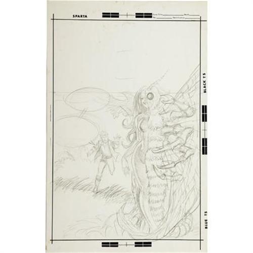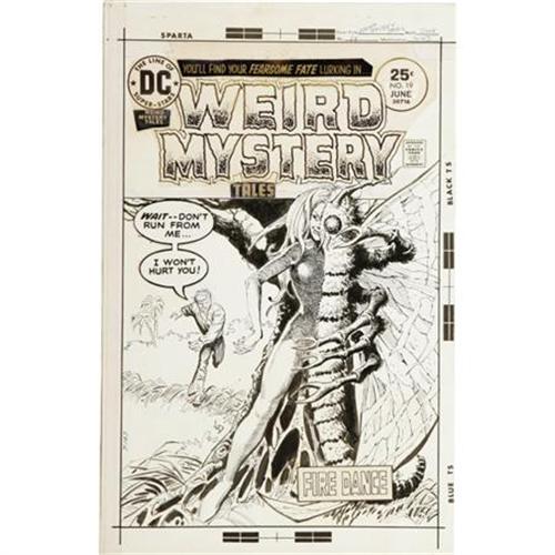 <B>Luis Dominguez - Weird Mystery Tales #19 Cover and Cover Preliminary Original Art (DC, 1975).</B></I> This creepy cover illustration by Luis Dominguez is sure to "bug" you! With a 10" x 15" image area, the work includes all the original title and masthead paste-up art. Also includes a preliminary sketch rendered in graphite, which also has a 10" x 15" image area. The cover art has some light soiling and paper tanning along the logo paste-up; otherwise both items are in Very Good condition. <BR><BR><b>Shipping:</b> Flat Material, Small (<a target="_blank" href="http://www.heritageauctions.com/common/shipping.php">view shipping information</a>)