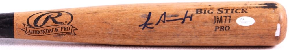 Adirondack Pro Big Stick Baseball Bat. Hand-signed in blue felt-tip pen by Luis Gonzalez (Diamondbacks). The bat has been game-used and cracked by an unknown player. The autograph includes an official James Spence Authentication (JSA) hologram and matching COA for authenticity purposes.
