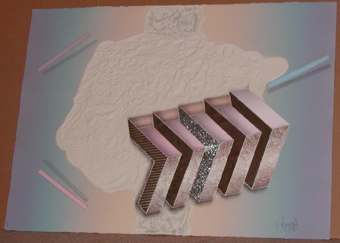 Original etching with embossing and collage 22”x30”. Signed in pencil by the Mexican artist and numbered in an edition of 125 with 12 artists proofs. Printed at the Soho Graphics Workshop, circa 1987. A beautiful example of the deep textural embossing and unusual collage effects in Mazorra's etchings along with his unique space illusions. Detail photos show the deep embossing that Mazorra achieves on all his etchings. Domestic shipping and packing-$65, International depending upon location.