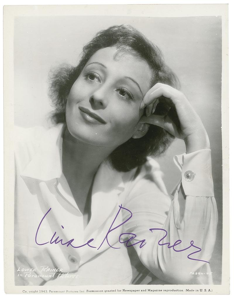 Glossy 8 x 10 Paramount publicity photo, signed in purple felt tip. Some edge chips and dings to right edge, otherwise fine condition.