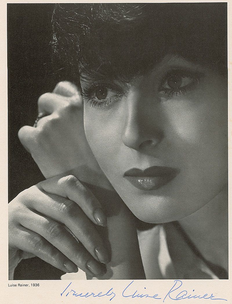 Stunning 8.75 x 11.5 program photo of Rainer in 1936, signed in the lower border in blue ink, “Sincerely, Luise Rainer.” In fine condition, with slightly trimmed edges.