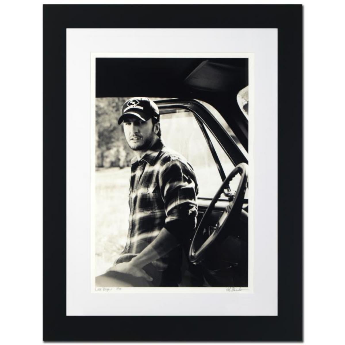 "Luke Bryan" is a limited edition giclee on paper, numbered and hand signed by acclaimed music industry photographer Rob Shanahan. This piece comes custom framed. Includes Certificate of Authenticity. Measures approx. 25" x 32" (with frame), 14.5" x 22" (image). Reference #: 237518.
