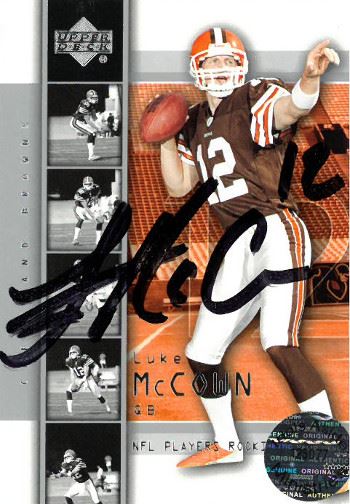 Luke McCown was drafted by the Cleveland Browns in the fourth round of the 2004 NFL Draft. He went on to start in four games for Cleveland. Luke McCown has hand signed this 2004 Upper Deck Trading Card #12. Certificate of Authenticity from Athlon Sports Collectibles.
