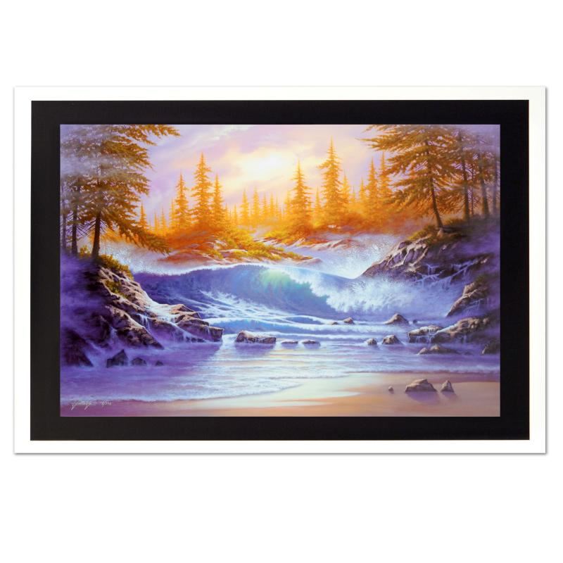 "Lullaby Sea" is a limited edition giclee on canvas by Jon Rattenbury, numbered and hand signed by the artist! Includes Certificate of Authenticity! Measures approx. 36" x 24" (image) with an additional 1.5" black border to allow for a gallery wrap display rather than requiring framing. Please allow 5 additional business for items that include canvas stretch or framing.