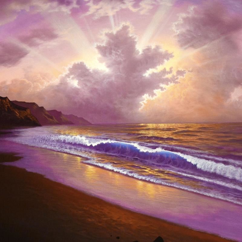 "Lullaby Seashore" is a limited edition giclee on canvas by Jon Rattenbury, numbered and hand signed by the artist! Includes Certificate of Authenticity! Measures approx. 24" x 20" (image) with an additional 1.5" black border to allow for a gallery wrap display rather than requiring framing.