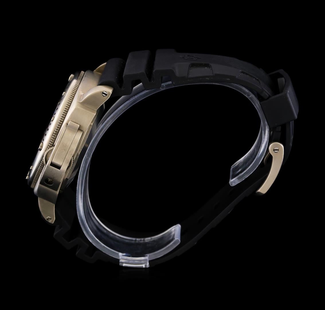 One Luminor Panerai Submersible Firenze watch featuring: Case: 52mm x 44mm, titanium, round. Dial: Textured black with Arabic numerals at 6 o'clock and 12 o'clock positions, pointed hands. Bracelet: Silicone/rubber with buckle. Movement: Automatic. Condition: No scratches on glass, very light wear on case and bracelet.