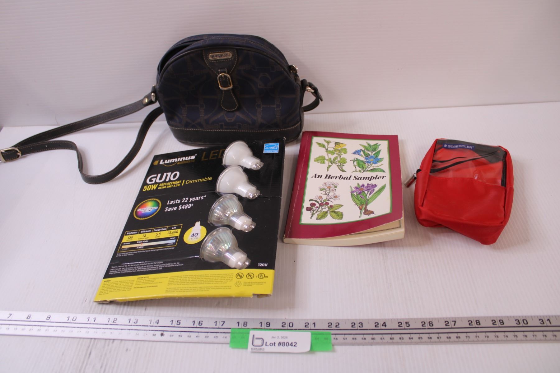 Luminus LED Lightbulbs (Opened, Un-Used), Louvier Purse, Herbal Notebook, Pencil Case Holder