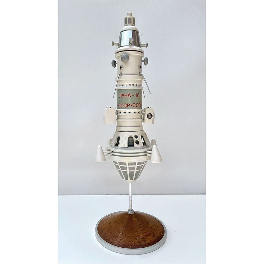 Vintage custom-made presentation model of the Luna 10 robotic spacecraft, constructed of metal and resin, measuring 12è in height and set upon a circular 4è diameter base. In fine condition.