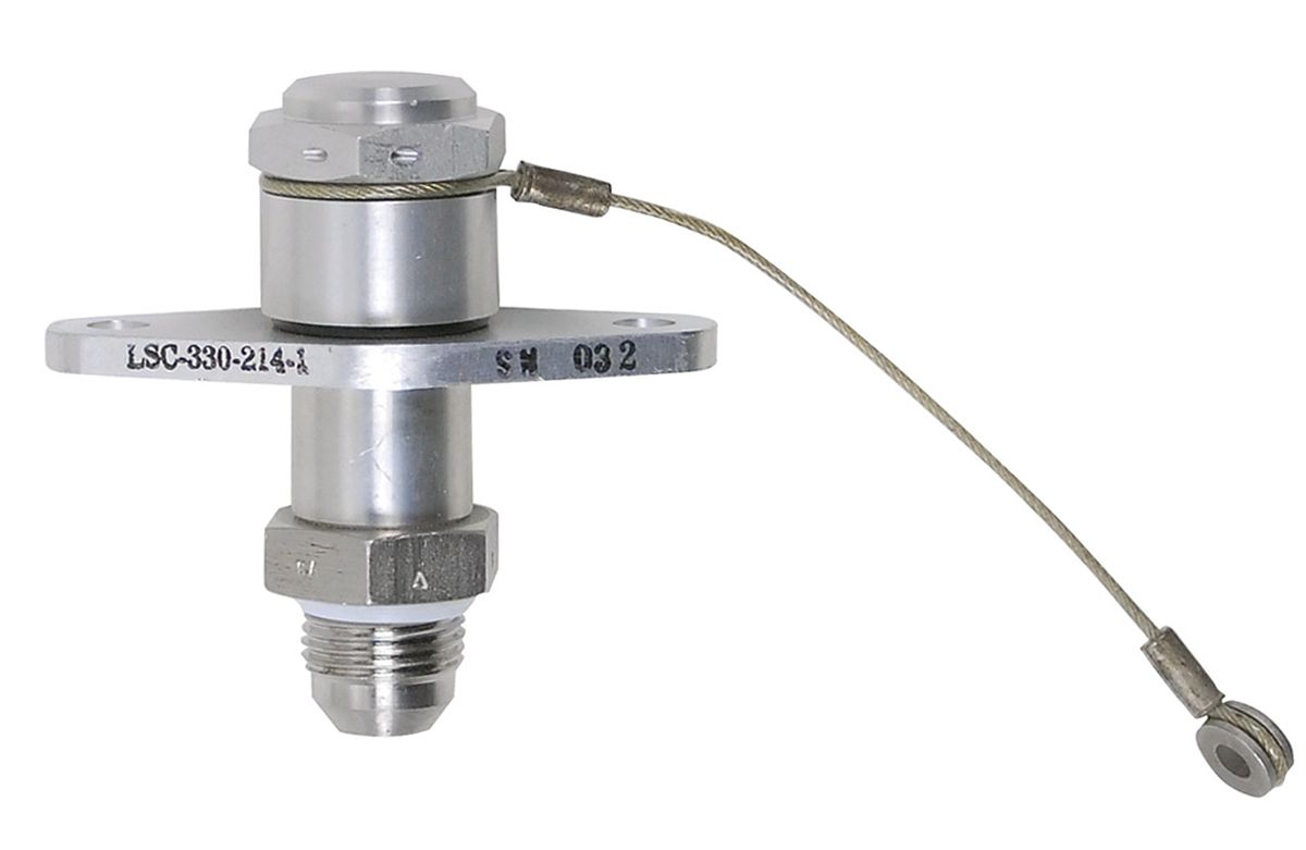 Lunar Module Coolant Fitting, serial #032, measuring approximately 3.25? long, complete with cover and wire tether. Hybrid construction fitting is made mostly from aluminum alloy, with the male hose connection being stainless steel. Coupling is complete with its Teflon washer and rubber o-ring. In fine condition.