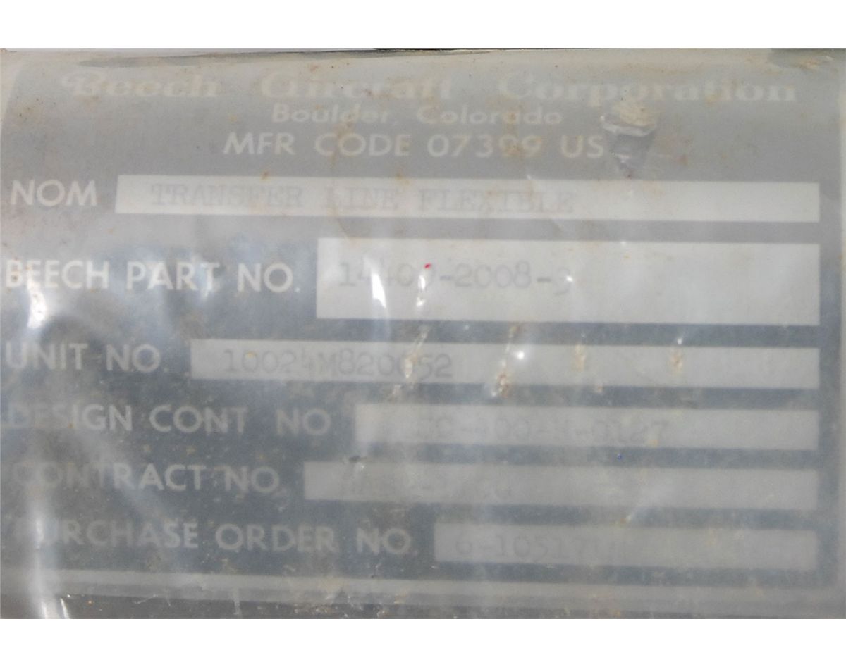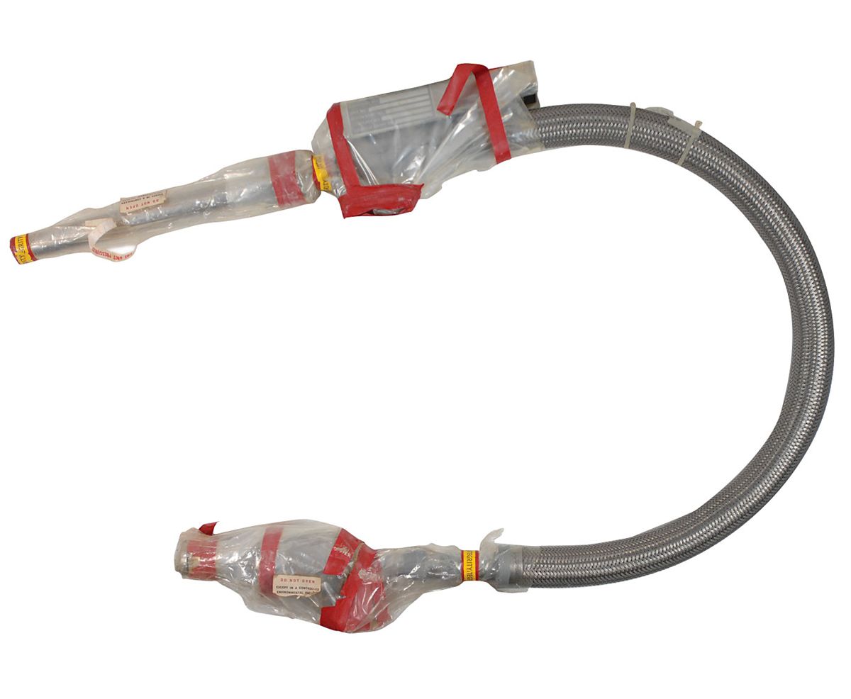 Lunar Module transfer line hose from Project Apollo. Flexible hose measures approximately 60? long, with both ends wrapped in plastic seal with red tape, “Do Not Open” warning labels, and an “integrity” seal as well. This pressurized gaseous helium line was manufactured by Beech Aircraft Corporation of Boulder, Colorado for the NASA Grumman Aerospace Corporation in New York. A metallic Beech label is affixed to the hose, identifying the part as, “Transfer Line Flexible,” serial number 10024M820052. Hose is a piece of Ground Support Equipment. In fine condition. Provenance: Charles Bell Estate.