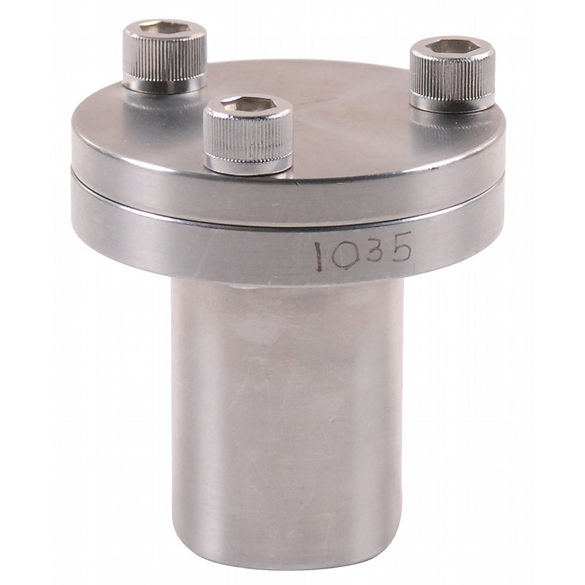 Lunar receiving laboratory stainless steel containment vessel, approximately 2.75 x 3, designed to hold moon rocks upon their return to earth. This two-piece vessel has three bolts to hold attach the top and bottom, and the number “1035” is etched onto the rim of the larger part. A heavy-duty vessel such as this would have been used to store lunar samples under vacuum within the Lunar Receiving Laboratory. In fine condition.