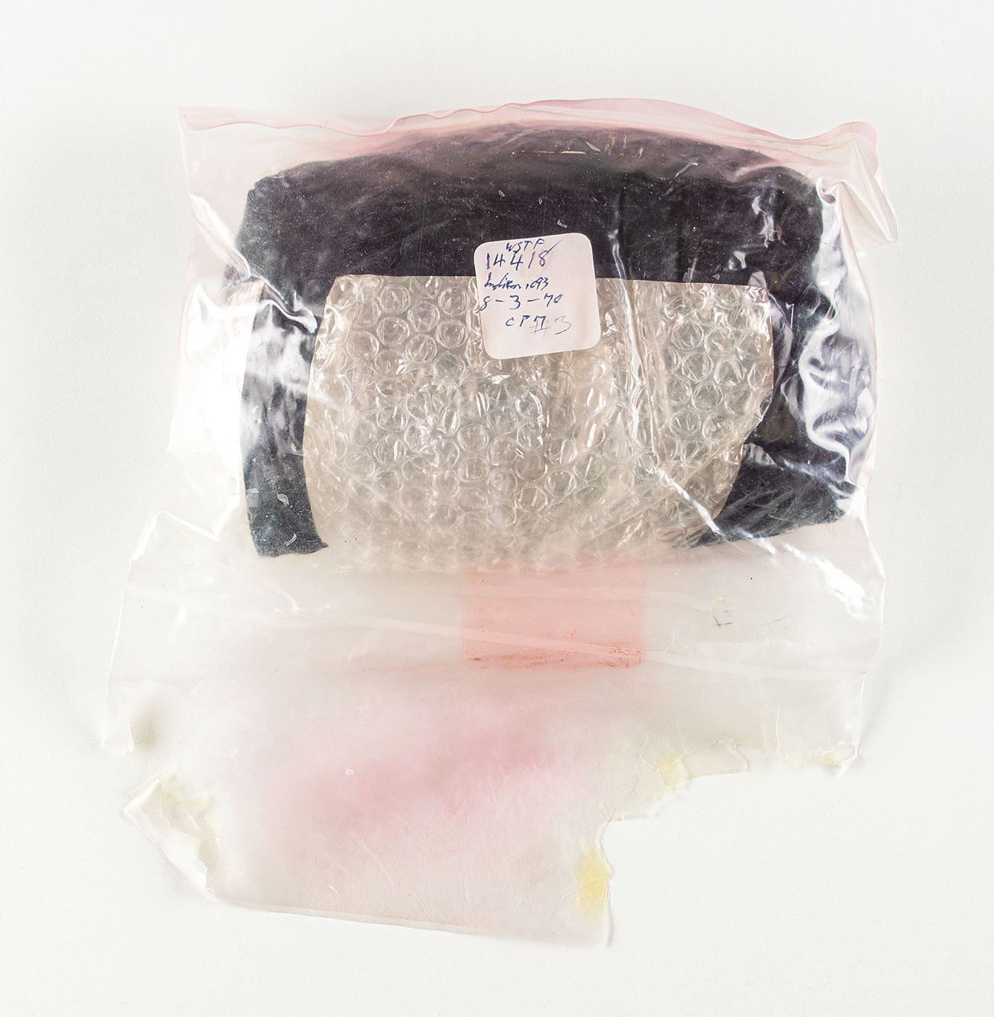 Large wound length of wire from the Lunar Receiving Laboratory, approximately measuring 5.25˝ in diameter, sealed within its original plastic deaccession bag, marked as No. 3, with annotated label: "WSTF, 14418…1093, 8–3–70, CPM." Interior red deaccession label dated July 16, 1970. In fine condition, with notable wear to bag. "WSTF" or White Sands Test Facility performed post use decontamination of LRL items following their decommission from service.