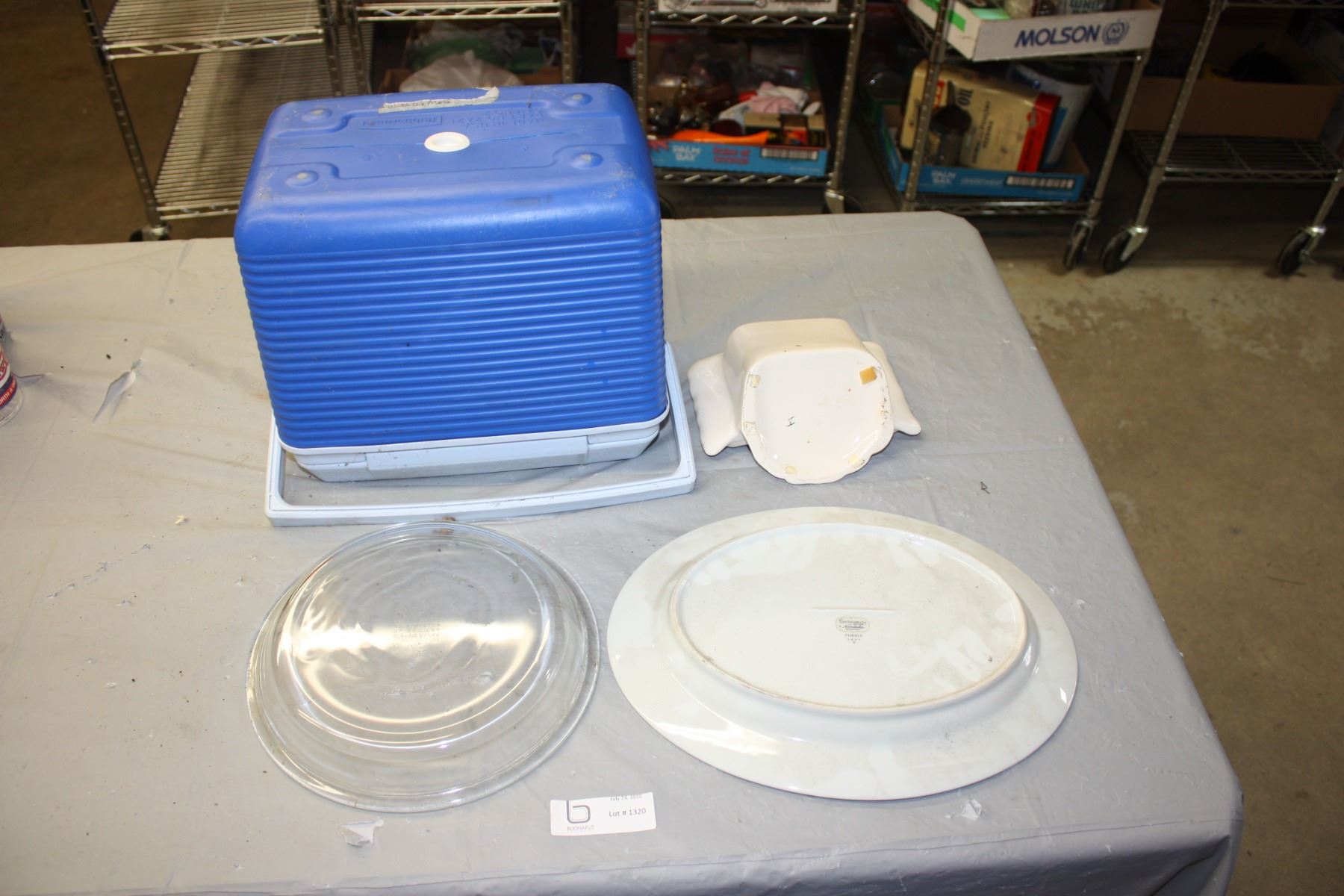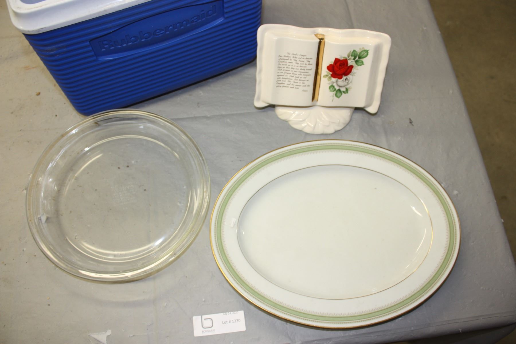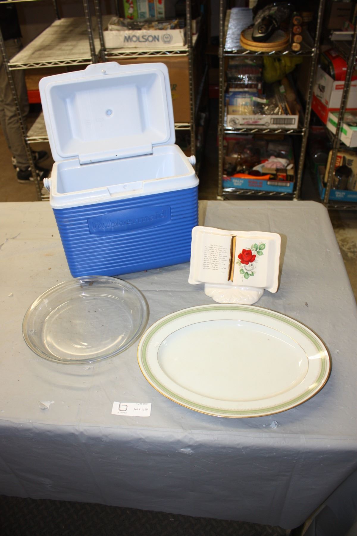 Lunch Box Cooler, Pyrex 209 Pie Dish, Display Plate and Ornament
