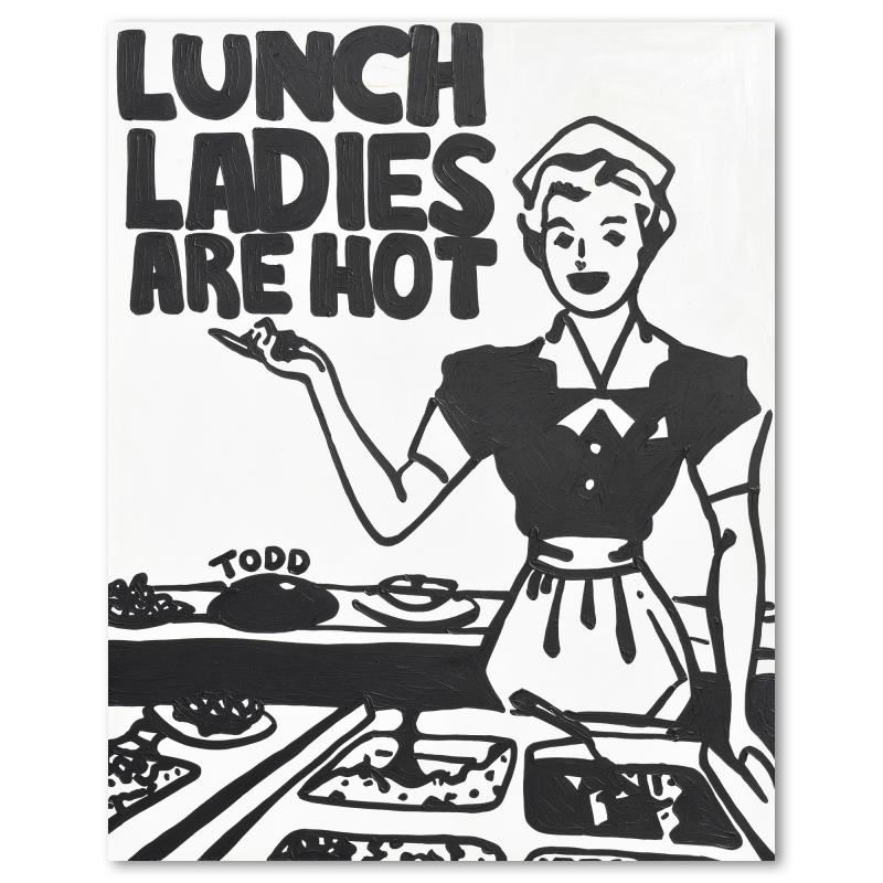 "Lunch Ladies Are Hot" is an original acrylic painting on gallery wrapped canvas by Todd Goldman, hand signed by the artist. Includes Letter of Authenticity. Measures approx. 48" x 60" (image). Due to the way this piece was stored there may be minor wear or signs of age (such as wear on the corners) but the piece is in overall good condition.