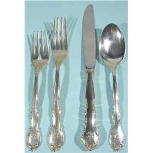 Dessert Spoons. A Total of 24 Pieces. All are monogrammed EXCEPT FOR 2 Knives and 1 Spoon which are not. Normal wear use, no damage.