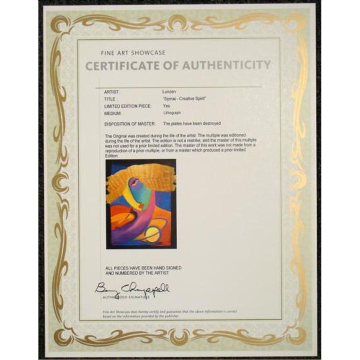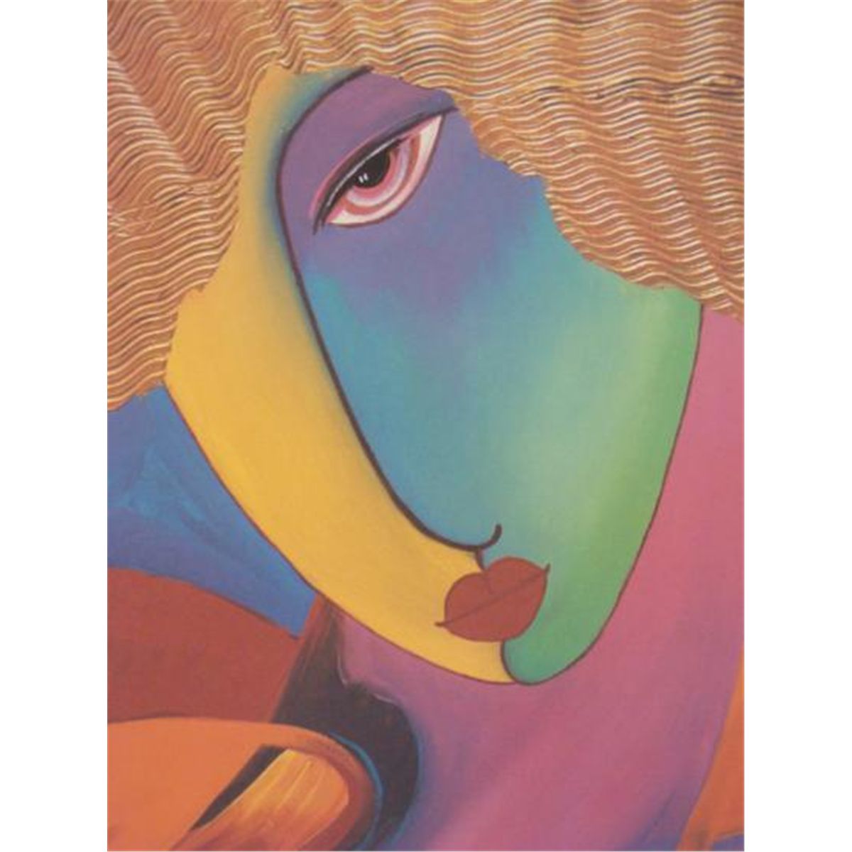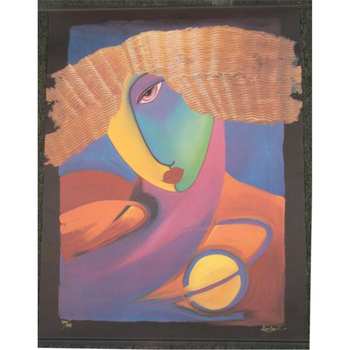 This print is by the artist Lunzen. He portrays this woman in a painterly style, with lots of colorful brushstrokes, all bringing out the creative process. * Artist: Lunzen Title: "Symai Creative Spirit" Medium: Silkscreen on paper Signature: Signed by the artist in purple ink, lower right Edition: Numbered 113/350 in purple ink, lower left; master screens have been destroyed Sheet size: 26 x 37 inches Condition: Excellent Certificate of Authenticity: From Fine Art Showcase This is a terrific portrait of a dignified woman, with fantastic colors that only Lunzen could do. * Biography: * Lunzen (1965- ) was born in Malaysia with a name meaning "peaceful meditation" or "harmony and happiness." This turned out to be the perfect name for him, as these qualities revealed themselves in his artwork. Lunzen began painting at the age of eight, and has since remained mostly self taught. His influences have been artists from the East and West, including: Bei-Hong, Chang, Pablo Picasso, Henri Matisse, and Marc Chagall. This translated into a fusion of styles, and compositions of rainbow colors, and neo-cubist forms. After traveling through the U.S., Lunzen now resides back in Malaysia, and continues his art, believing it to be an inspiration for world peace. He has received numerous awards, including the Malaysia National Arts Competition, and Emerald City Classic in Kansas. His art is widely cherished and collected throughout the world. *