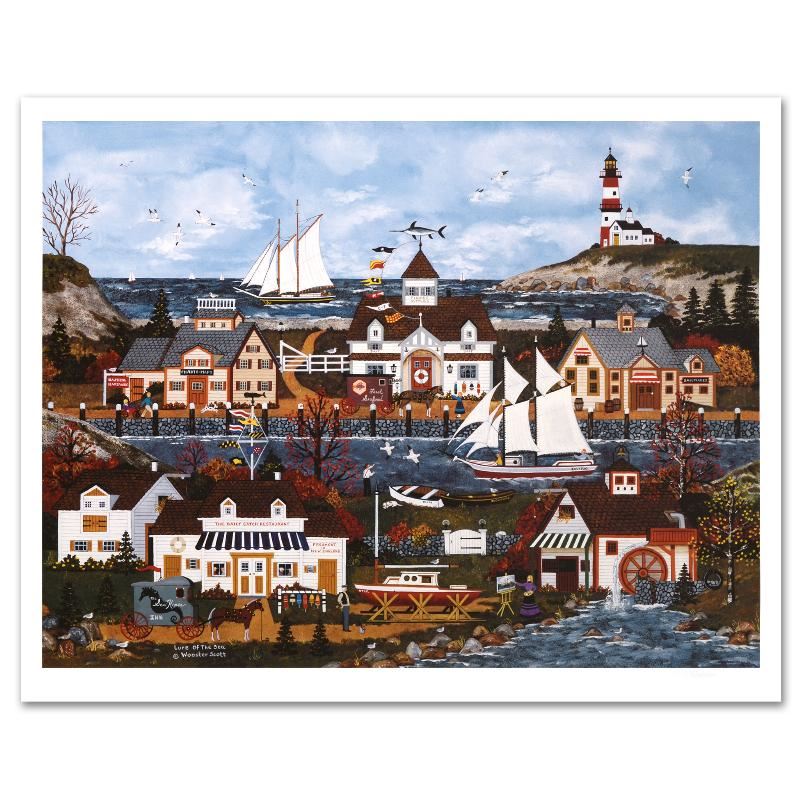 Cozy, down-home images of a bygone era when life was simpler - this is the feeling captured in the creations of one of the world's most recognized artists. "Lure of the Sea" is a limited edition lithograph on paper, numbered and hand signed by Wooster Scott! Includes Certificate of Authenticity! Measures approx. 33" x 27" (with border), 30" x 22.5" (image).