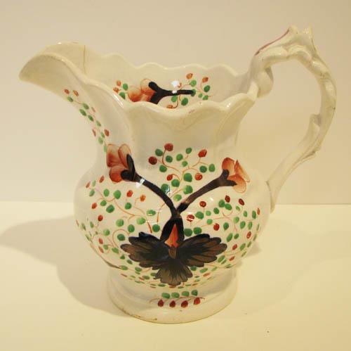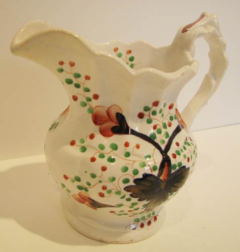 Title: Lusterware Porcelain Pitcher with vine and floral decoration