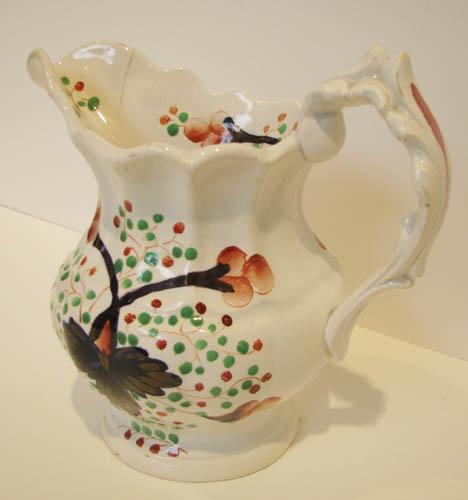 Condition: In generally good condition apart from a hairline crack along the spout of the pitcher, appears to be stable, some crazing.