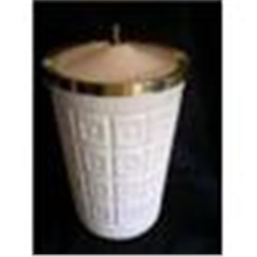 Ice Bucket is white trimmed in gold with gold knob. This ice bucket is marked Lustro-Ware and measures 8.5 inches wide and 13 inches high and is in fine condition.