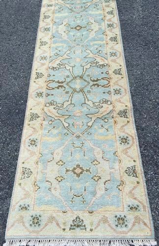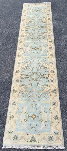 Lustrous high quality sultan-abad design Runner. 100%natural, vegetable dye, hand-woven, finest quality worsted wool pile on cotton foundation. Sultan-abads typically come with a bold and primitive pattern; these unique pieces are woven by artisans who incorporate their daily life experiences into the design and motifs. These elements include cultural influences such as prosperity, fertility, good fortune, and some even to ward off evil eye. This lovely runner has a wonderful glowing sheen because of the superior quality wool used. Size: 12 feet X 2 feet 8 inches. Country of Origin: Nepal.