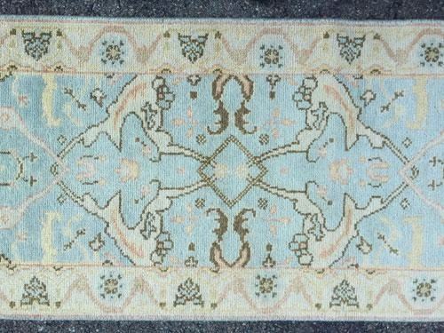 Lustrous high quality sultan-abad design Runner. 100%natural, vegetable dye, hand-woven, finest quality worsted wool pile on cotton foundation. Sultan-abads typically come with a bold and primitive pattern; these unique pieces are woven by artisans who incorporate their daily life experiences into the design and motifs. These elements include cultural influences such as prosperity, fertility, good fortune, and some even to ward off evil eye. This lovely runner has a wonderful glowing sheen because of the superior quality wool used. Size: 12 feet X 2 feet 8 inches. Country of Origin: Nepal.