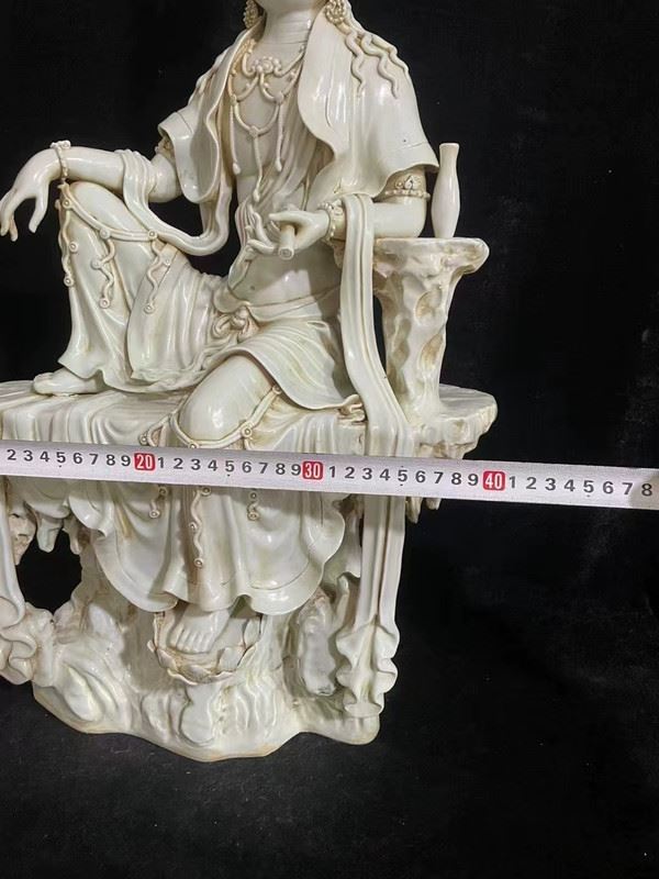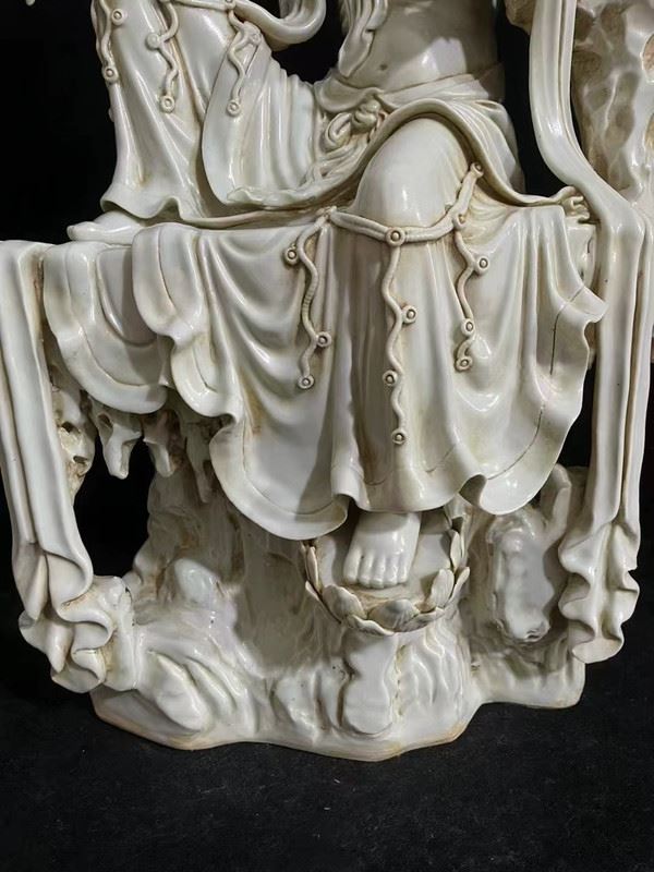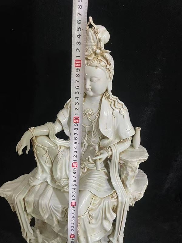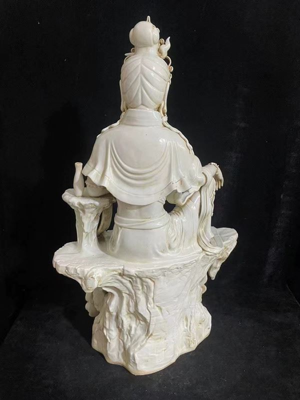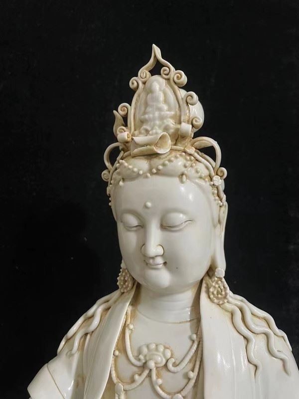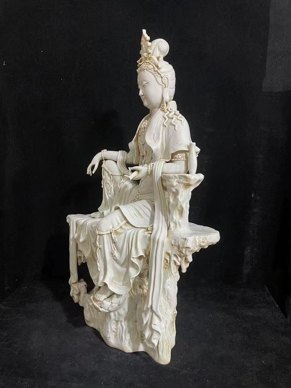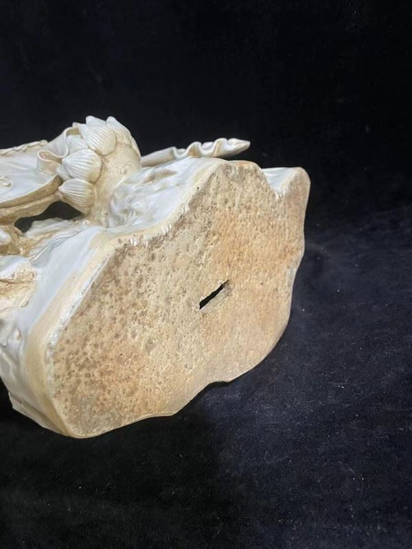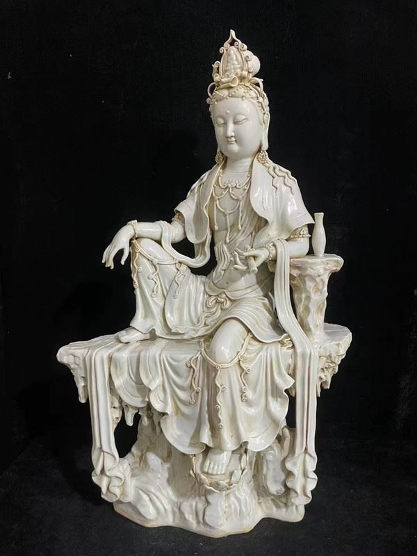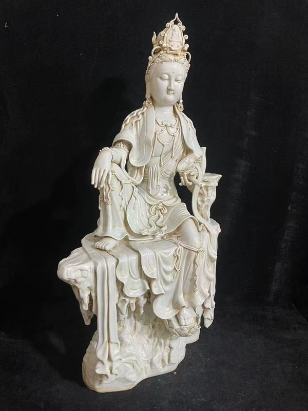 This Lutian Kiln Self-contained Guanyin statue showcases the gentle and compassionate nature of the Bodhisattva, with intricate craftsmanship reflecting elegance and tranquility. Seated naturally, she holds a lotus flower, symbolizing her compassion and spirit of saving all beings. Known for its exquisite texture and refined style, Lutian Kiln porcelain makes this statue highly valuable both artistically and culturally.
