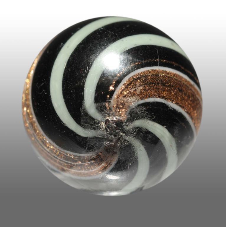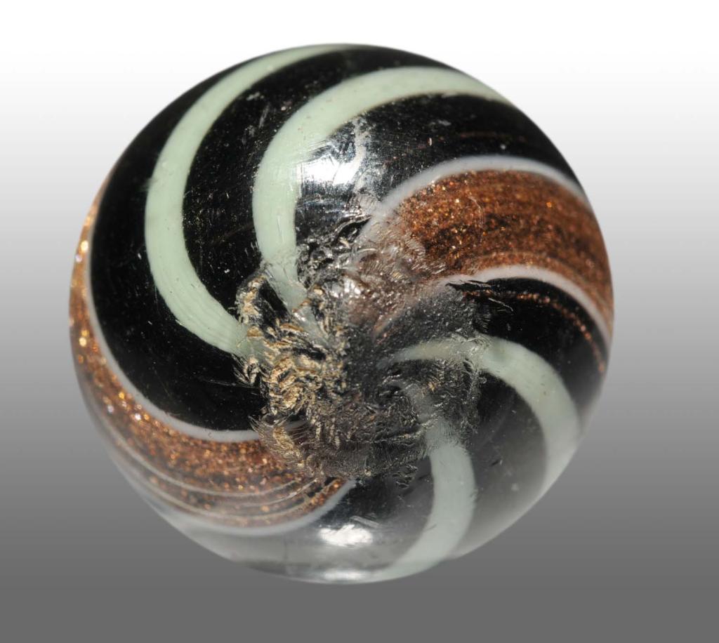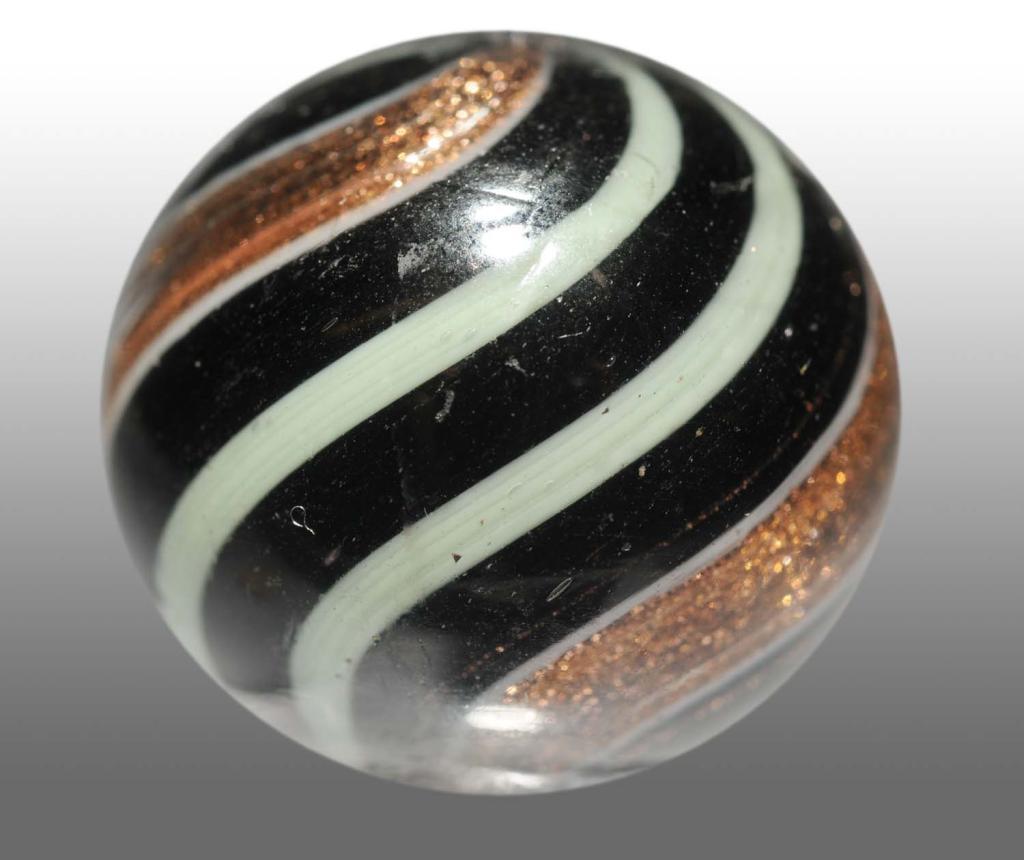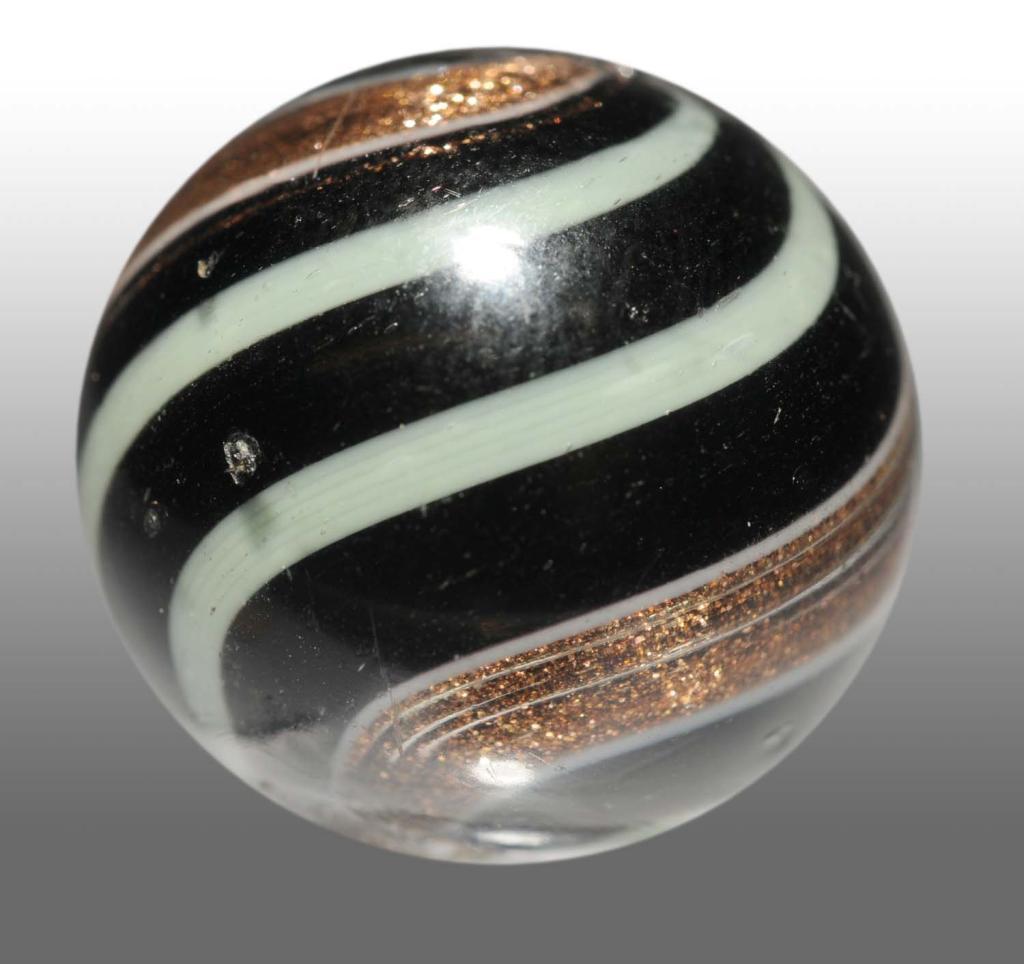 Dark opaque with lime green alternating bands. Condition (9.5). Size 25/32" Dia.