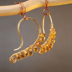 Metal: GoldHammered curved wires with orange sapphire, about 1-1/2".Available in either 14K gold-filled, rose gold-filled, or sterling silver. All jewelry is entirely handmade in our studio in New York.