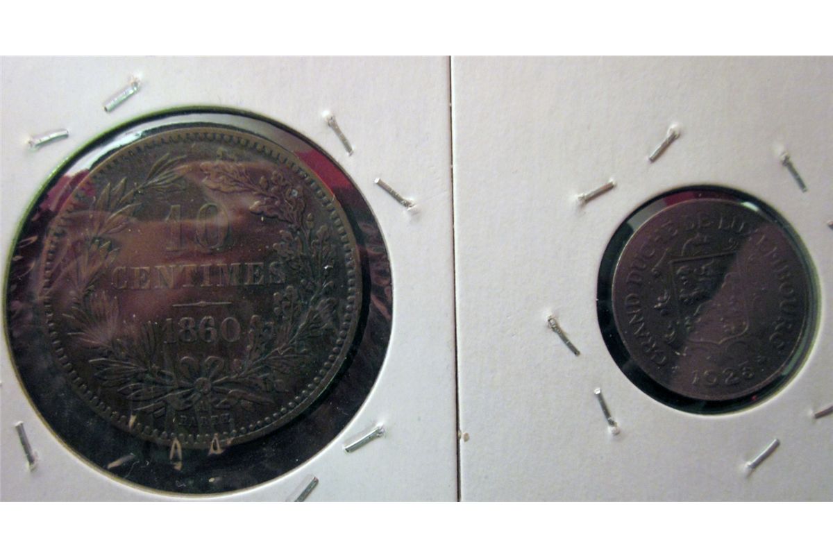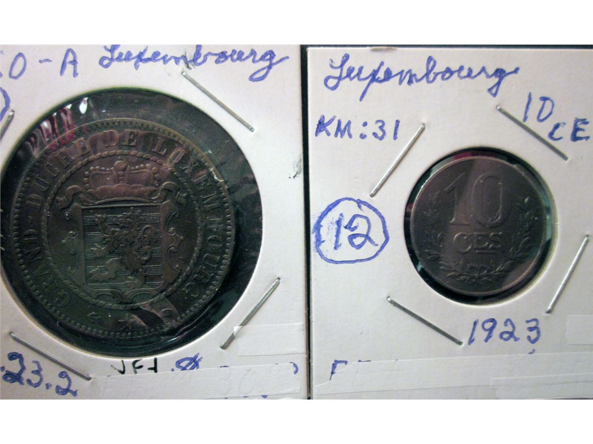 Luxembourg; 10 Centimes 1860A in VF+ and 1923 in AU. Lot of 2 coins.