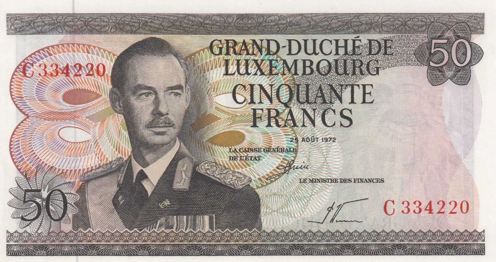 Luxembourg, 50 Francs, 1972, UNC, p55bbr/serial number: C 334220
