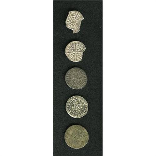 <B>A miscellaneous 5-piece lot as follows;</B></I> Jean L'Aveugle AR Esterlin ND (1309-46), Probst-L51-1, a fragment with the central portrait bold and details VF; Jean L'Aveugle AR Esterlin ND (1309-46), VG-Fine with a substantial piece of the flan missing; Wenceslas I AR Esterlin ND (1353-1383), Probst-L150-1, Fine details with a wavy flan and sizeable flan crack; Wenceslas I AR Esterlin ND (1353-1383), Probst-L150-1, about VF; and a Charles II 1700 billon Sou, Probst-L242-1, Fine details with moderate to heavy abrasions and a noticeable flan crack, very scarce. <B></B></I><BR><I>From the Robert Sayre Collection.</B></I><BR><BR><b>Shipping:</b> Coins & Currency (<a target="_blank" href="http://www.heritageauctions.com/common/shipping.php">view shipping information</a>)