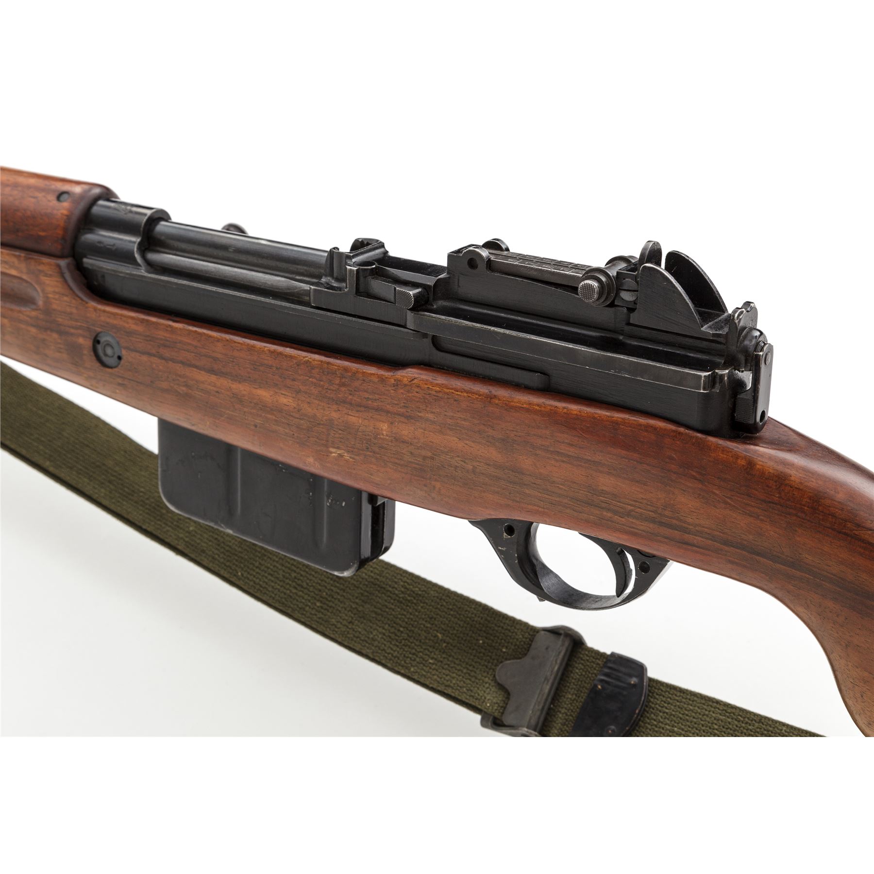 Luxembourg Contract FN49 Semi-Automatic Rifle, #5764, .30-06 cal., 23'' barrel, black painted finish, walnut stock, blade front sight with protecting ears and adjustable sliding ramp rear sight. Marked on top of receiver ''AL'' (Armee Luxembourg), and on right side ''FABRIQUE NATIONALE D'ARMES DE GUERRE_HERSTAL BELGIQUE''. Stamped stock cartouche forward of triggerguard. Bolt and bolt carrier serial numbers match. Number on stock is mismatched. Condition overall is very good with approx. 80% finish remaining on the metal with areas of scratches, especially on the barrel. Wood has overall light to moderate handling marks. Action is smooth, bright bore is excellent. No visible import marks. Includes a green cotton sling marked ''MRT JAN.1953'' in excellent condition. Est.: $1,000-$1,500. (C&R)
